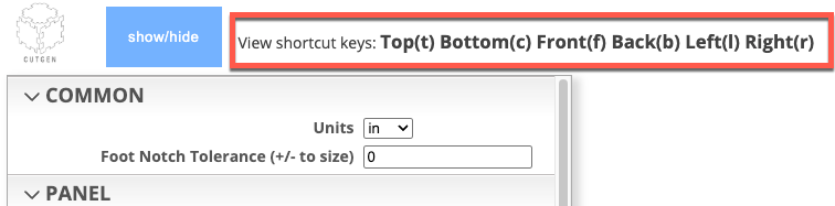 Quick view keyboard shortcuts are provide. The view perspective is if you laid the panel down onto a flat surface and you are looking down at it.