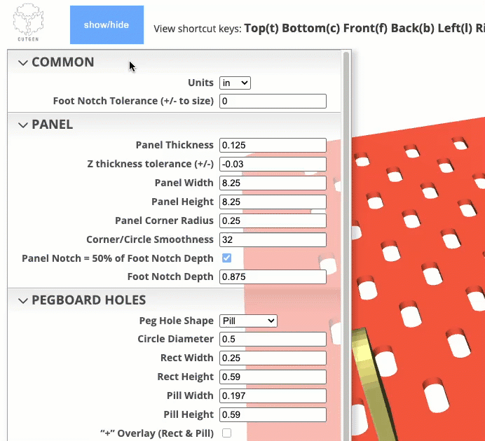 Pegboard Designer is an indirect 3D modeling tool tailored specifically for laser cutters, 3D printers, and CNC machines. Customization is facilitated through an intuitive menu with customizable parameters.