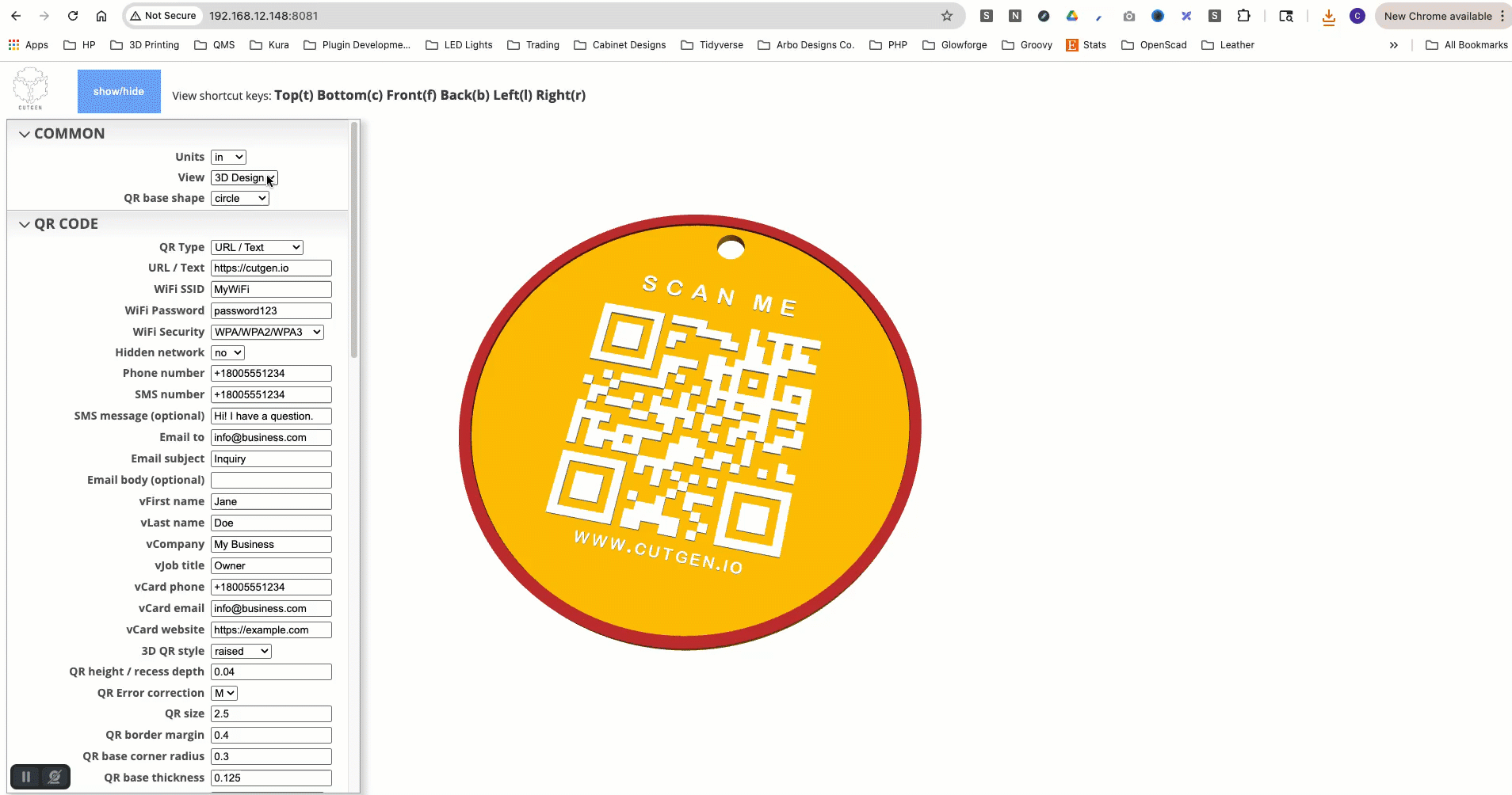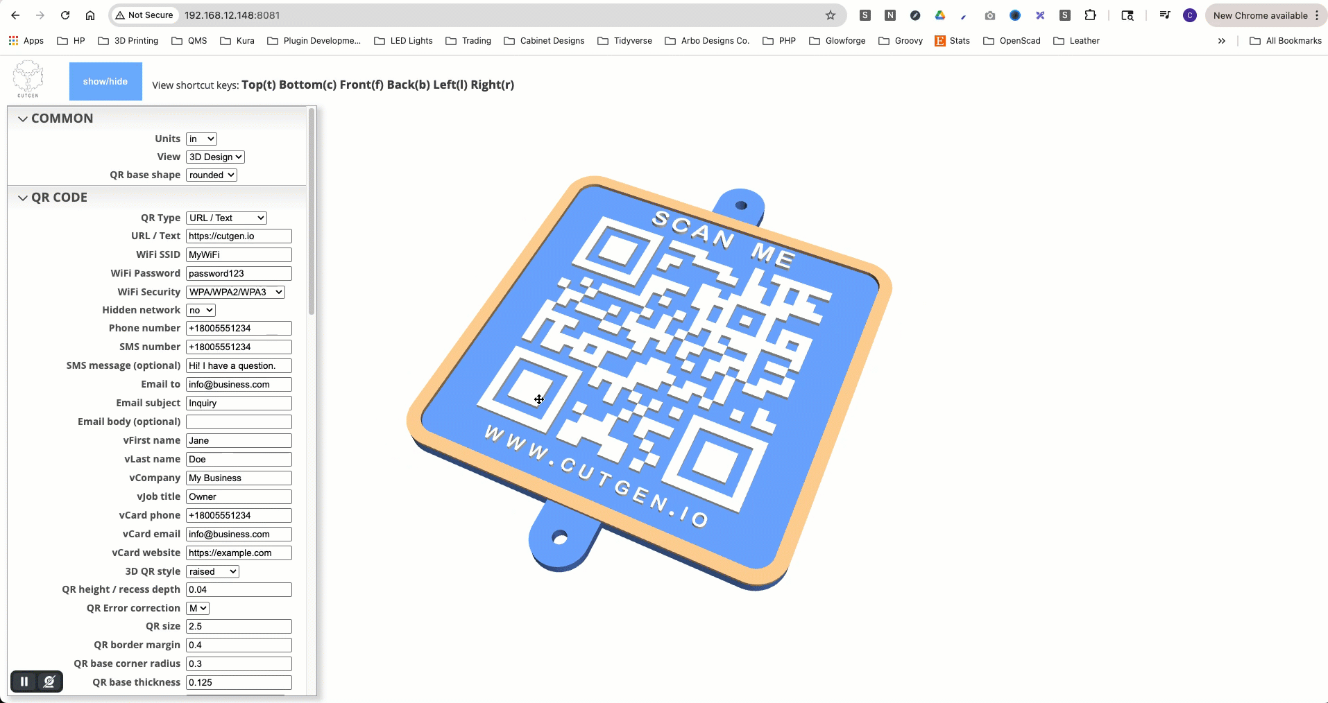 QR Code Designer is an indirect 3D modeling tool tailored specifically for laser cutters, 3D printers, and CNC machines. Customization is facilitated through an intuitive menu with customizable parameters.