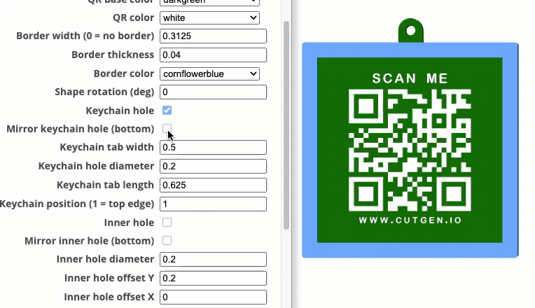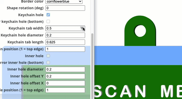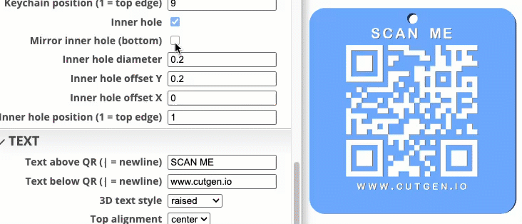 TRUE/FALSE Checkbox. Set to TRUE to add a 2nd mirrored keychain hole. Keychain hole checkbox must be ‘checked’.