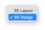 3D Design. This is the default view and used for Exporting STL which can be imported into a 3D slicer or mesh editing software. Mostly for 3D printing.2D Layout. Used for Exporting SVG which be imported into a laser cutting/CNC software such as LightBurn, Glowforge Carbide Create, etc. Mostly for Laser Cutting or CNC operations.