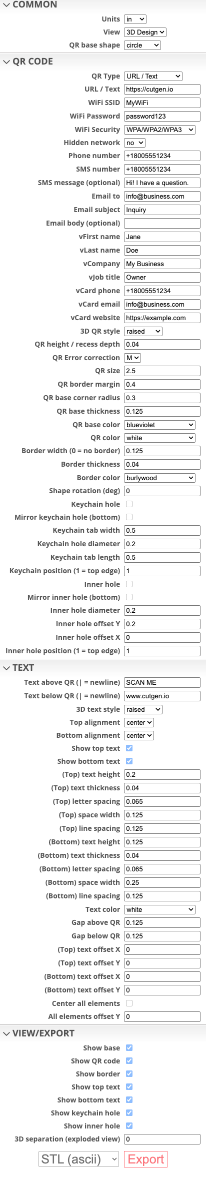 Simply the fastest low fuss method for creating QR codes. Providing 3D (STL), and 2D (SVG) outputs