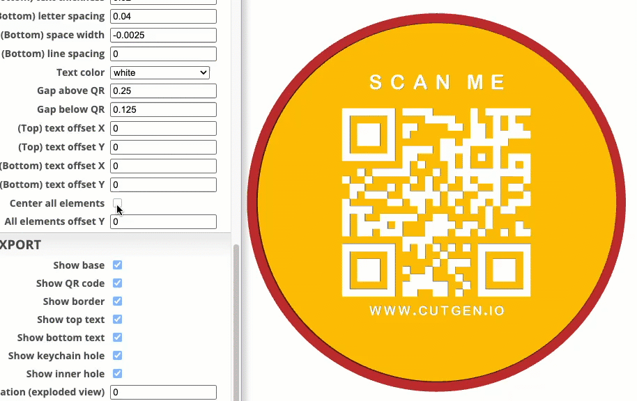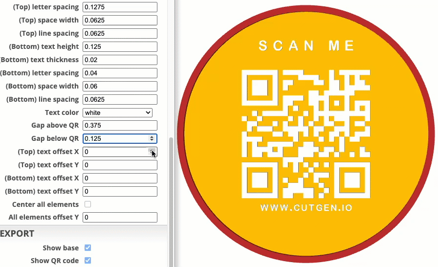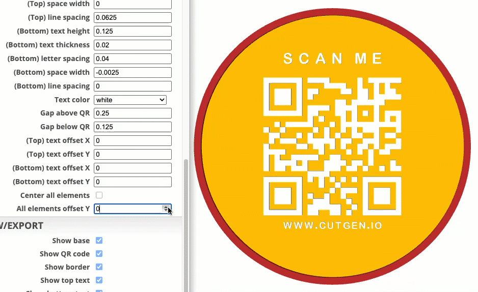 Applies a Y (up/down) offset to the Top/Bottom and QR Components on the base shape. center all elements must be ‘unchecked’